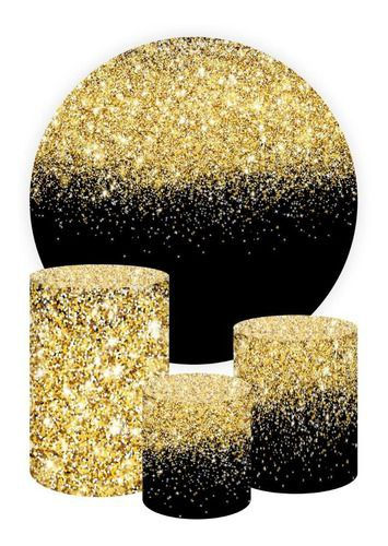 Black/Gold Glitter Themed Round Backdrop and Cylinders Kit